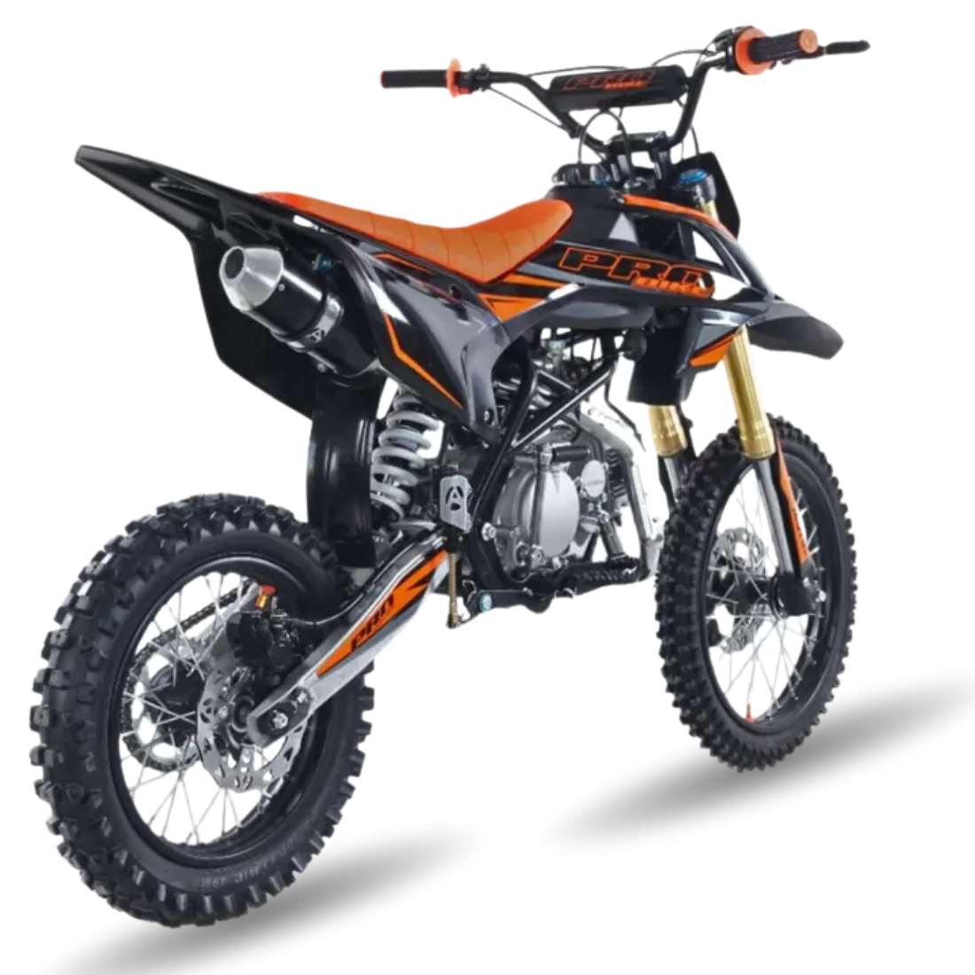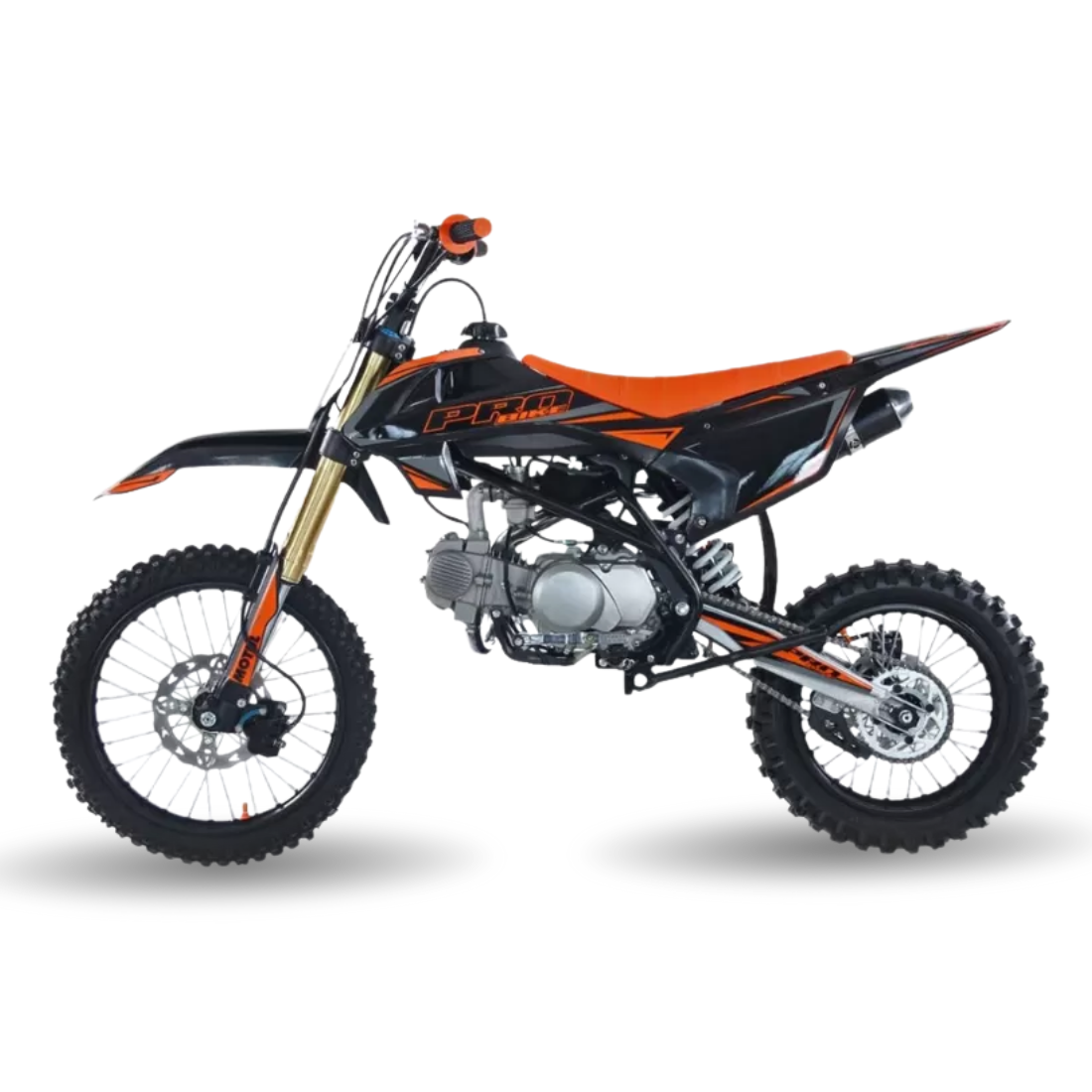 | Selle anti-dérapante / Tés et pontets aluminium / Sélecteur repliable / Leviers repliables / Béquille latérale / Bavette d'amortisseur rigide / Sabot moteur / Poignées full grip à picots / Grille d'échappement / Roulette de chaîne |