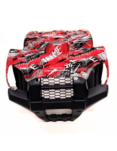 Le carénage se compose en une partie complète en rouge graffiti et la face avant noir et le pare choc avant comme sur la photo et les 2 marches pieds