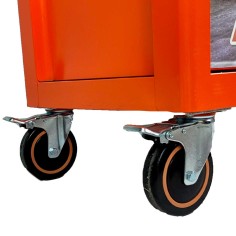 Grâce à sa poignée ergonomique intégrée dans le plan de travail et ses roulettes avec frein promenez là partout dans votre atelier et ayez toujours l’outil qu’il vous faut. Accédez rapidement à vos outils rangés dans des tiroirs montés sur glissière télescopique avec roulement à billes. Son système anti-renversement vous garantit une stabilité à toute épreuve. Le plan de travail est conçu en matériaux antichocs qui résisteront à toutes vos manipulations sur votre servante.