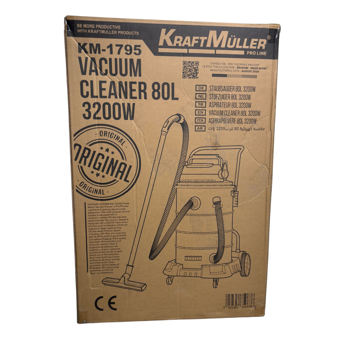 L'aspirateur eau et poussière 80 L 230 V 3200 W Kraftmuller, cuve inox basculante à deux moteurs, est un outil indispensable pour les professionnels. Sa cuve en inox de 80 litres garantit une durabilité exceptionnelle et, grâce à sa puissance maximale de 3200 W, il permet de nettoyer efficacement des environnements chargés de débris et de liquides. Sa conception basculante facilite le vidage, faisant de cet aspirateur un compagnon idéal pour les chantiers.