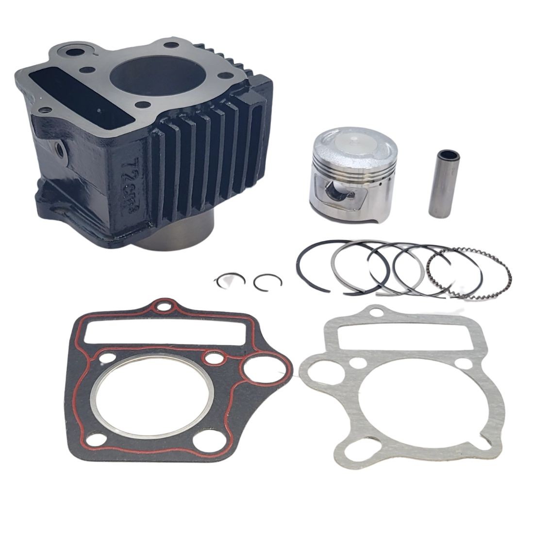 Livré avec le cylindre , les segments, l’axe ,le piston et les clips pour tenir l’axe du piston et le joint de culasse et le joint d 'embase.