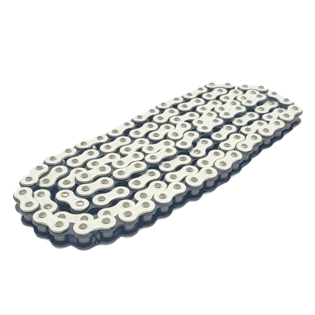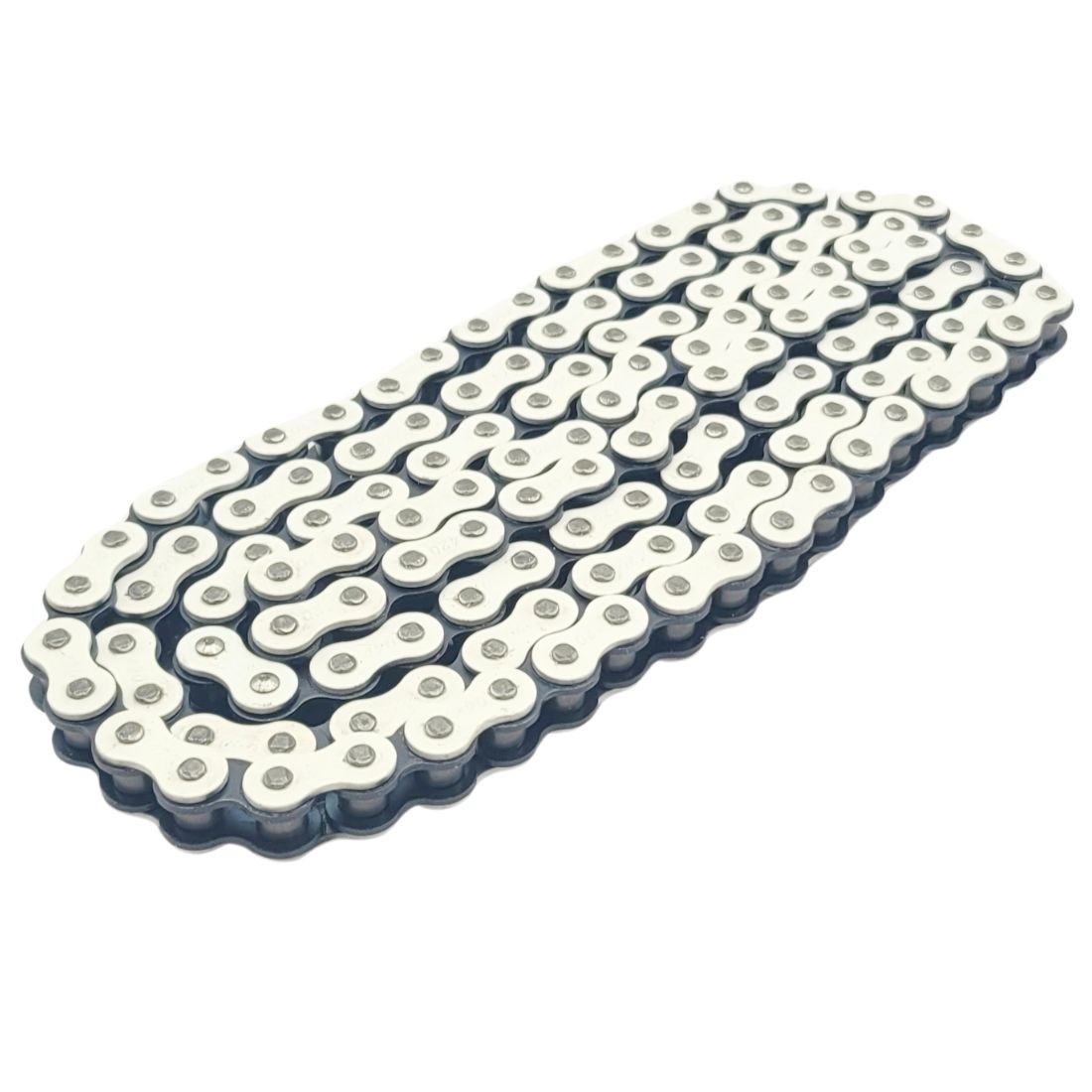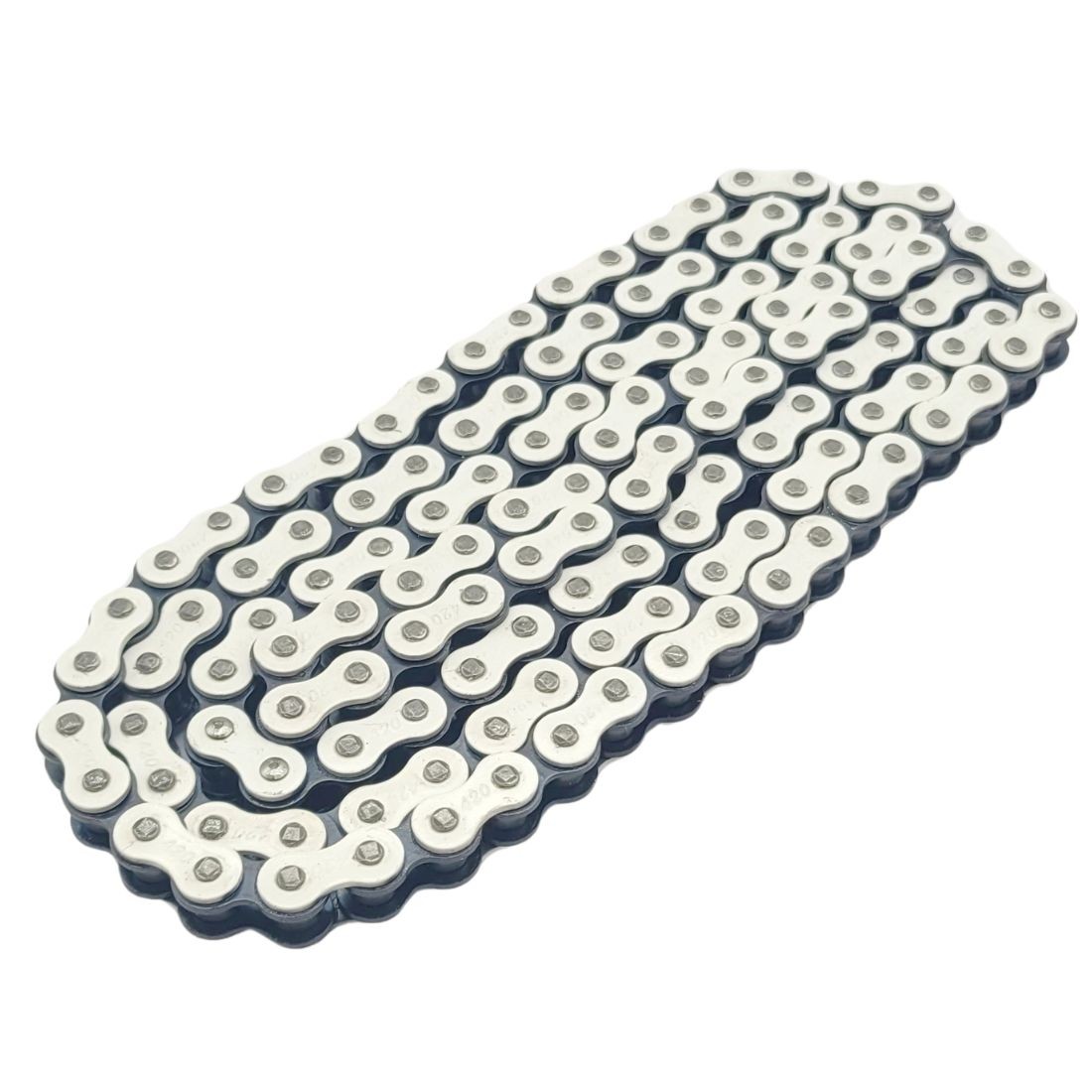 Chaîne pas 420 BLANC - 130 maillons - KMC pour pit bike / dirt bike / buggy / kart / scooter / motocross / ....