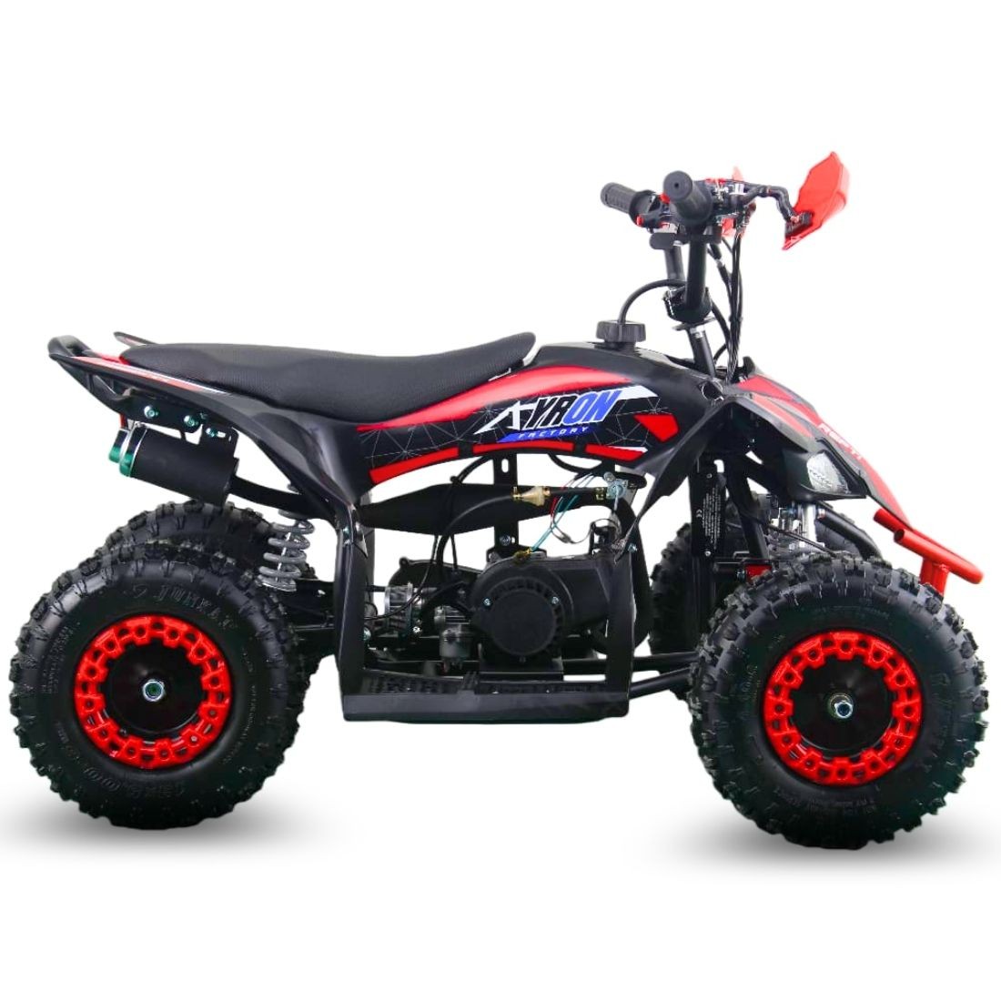 Le dernier modèle sorti sur le marché , le quad AYRON REPTI est sur équipé , tout inclus, rien en option!! Nouveau pneus 6 pouces à boudin large sur jante acier avec les flasques de couleur , sangle d'arrêt d'urgence type jetsky , grands marche pieds, protège mains de couleur , poignée pouce des gaz, vis de bridage , lanceur easy start , embrayage renforcée ..... le top du top vraiment haut de gamme!