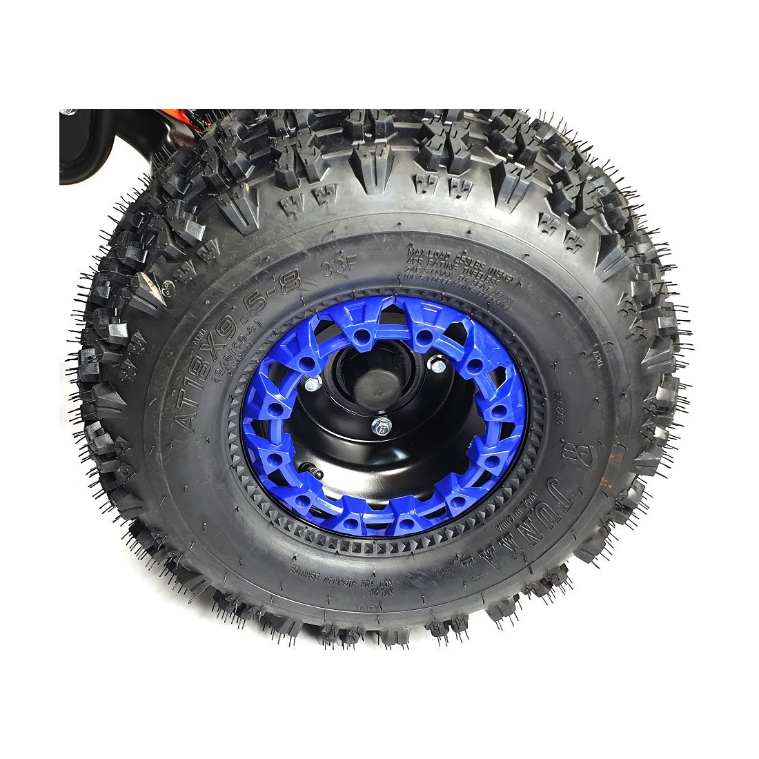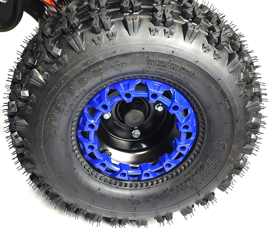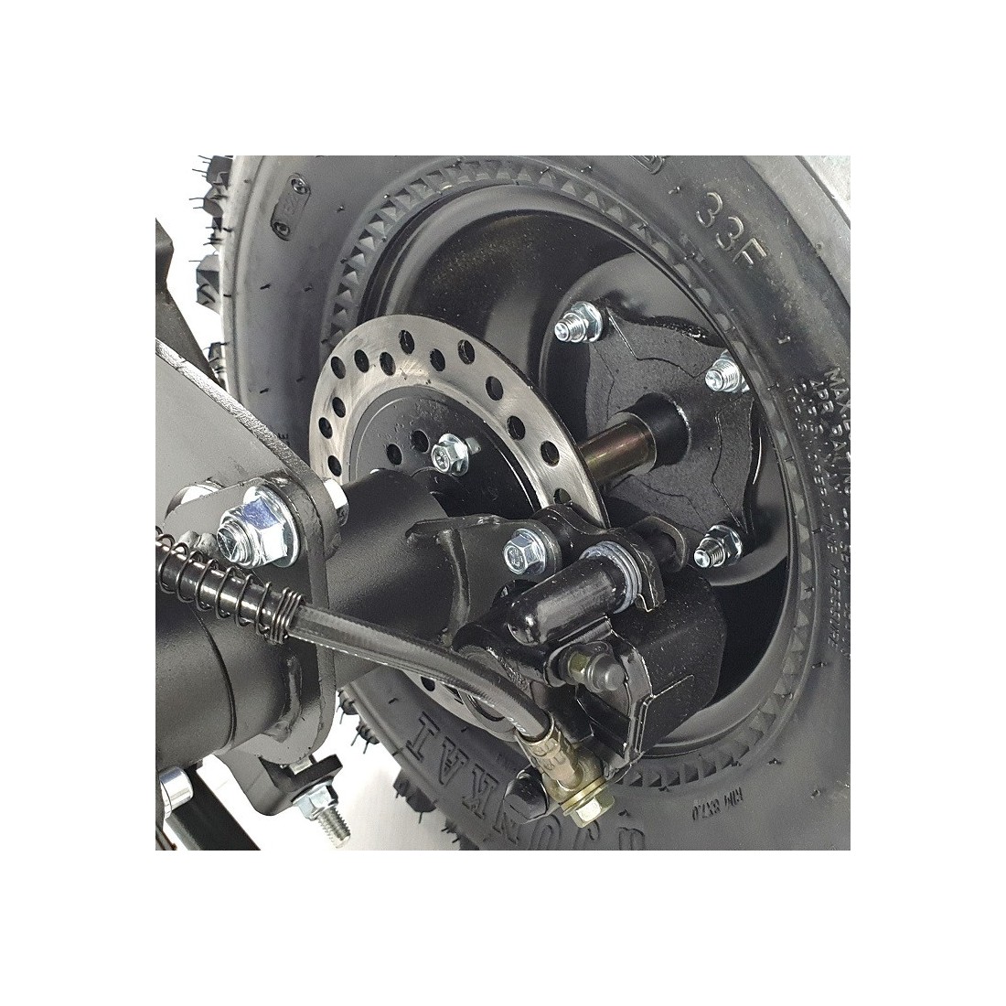 - Des pneus 8 pouces typés cross avec des gros crampons