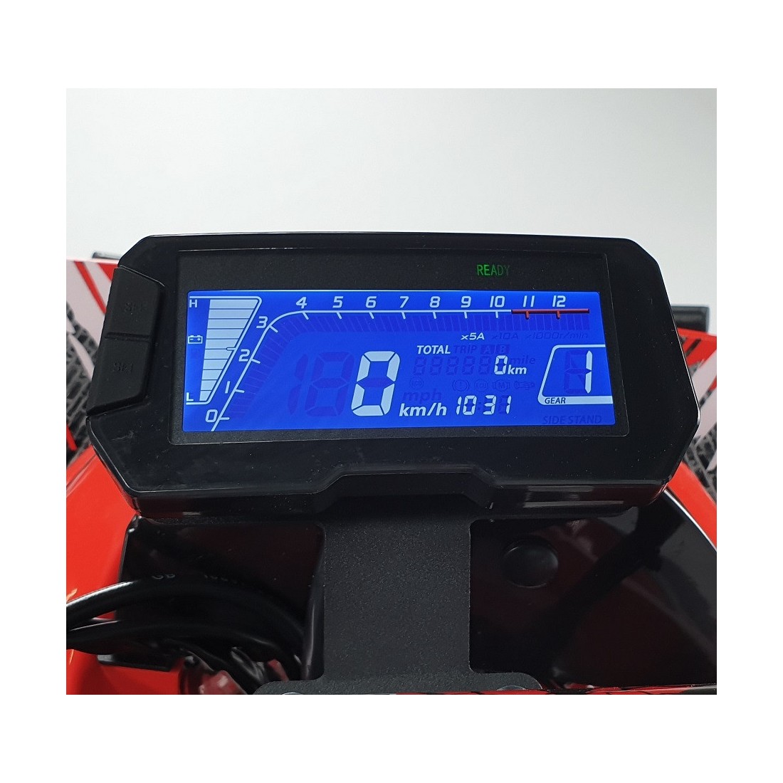 - Un compteur digitale lumineux avec un grand écran avec affichage des 4 modes de vitesses / marche arrière / niveau de charges des batteries / la vitesses